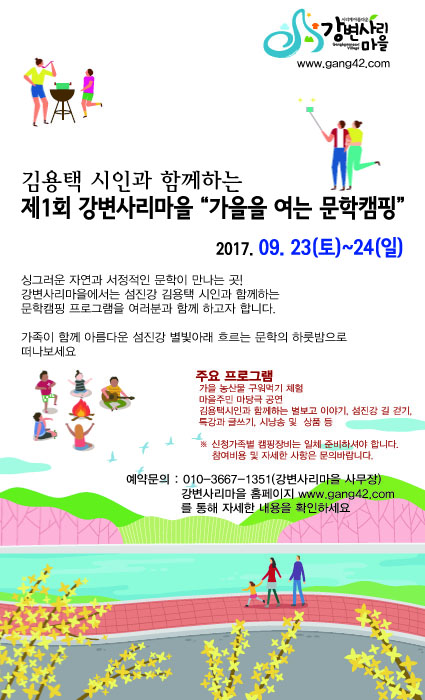 강변사리마을 '김용택 시인과 함께하는 문학캠핑' 참가자 모집